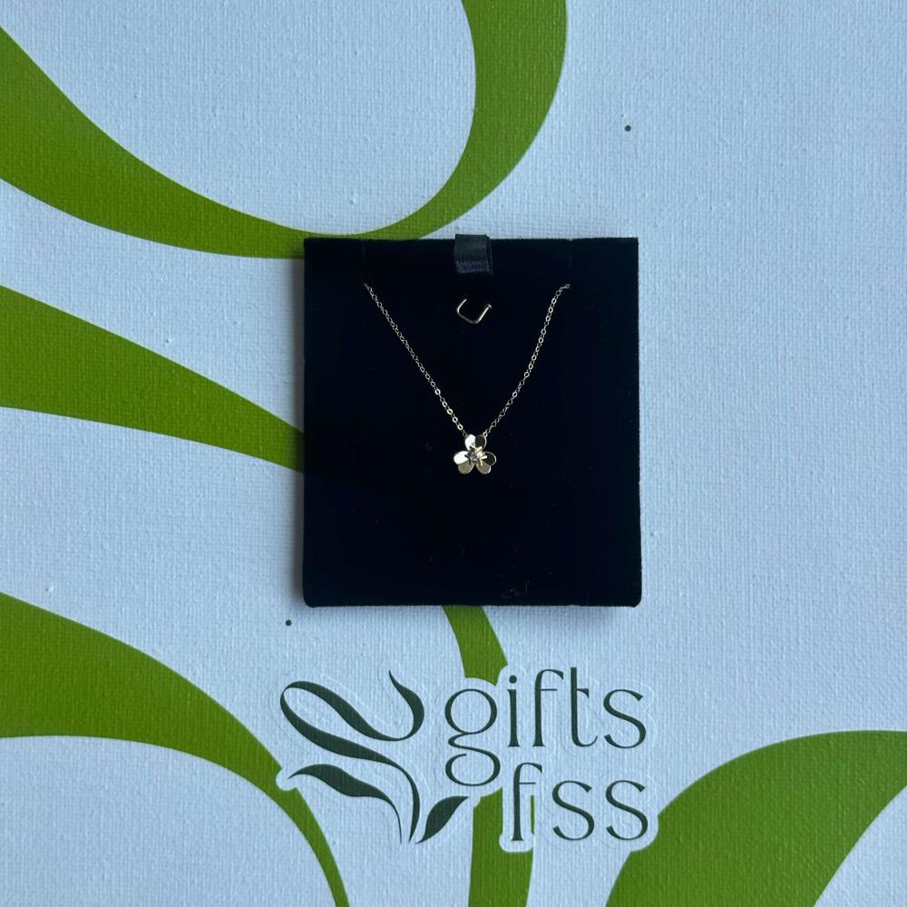 عقد ذهب عيار 18 بتصميم وردة مرصعة بالأحجار اللامعة، مثالي لإطلالة راقية وجذابة. هدية مميزة للمناسبات الخاصة