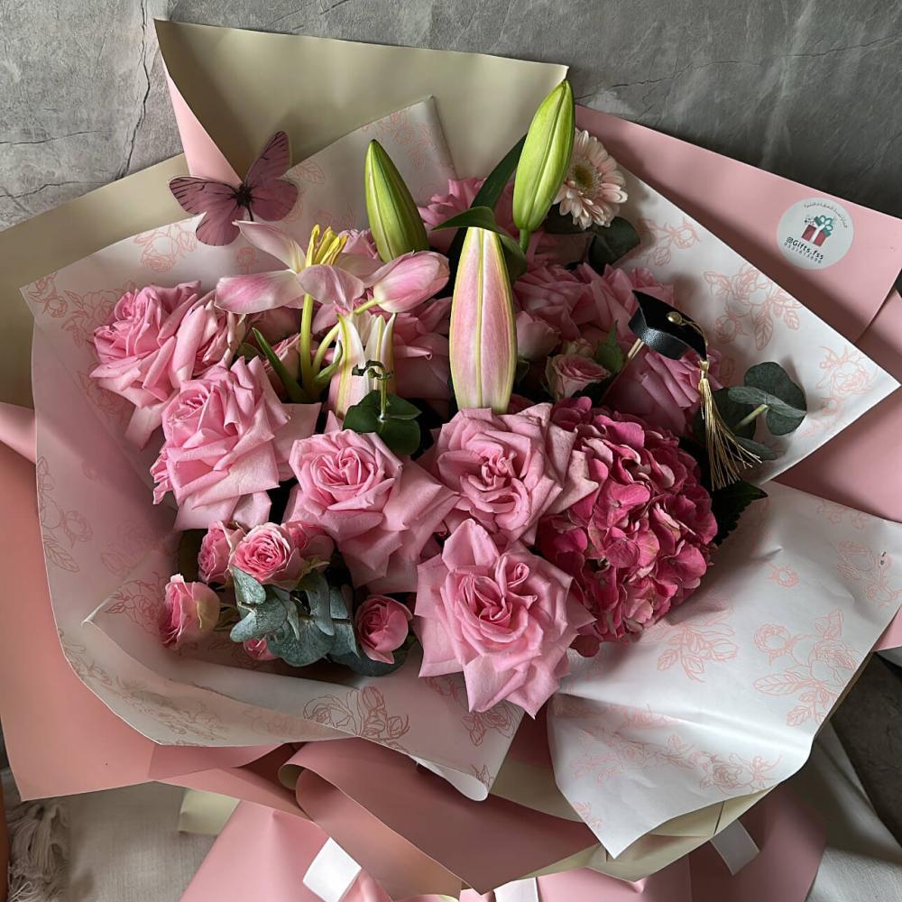باقة ورد بنك بتصميم تخرج ولمسة فاخرة