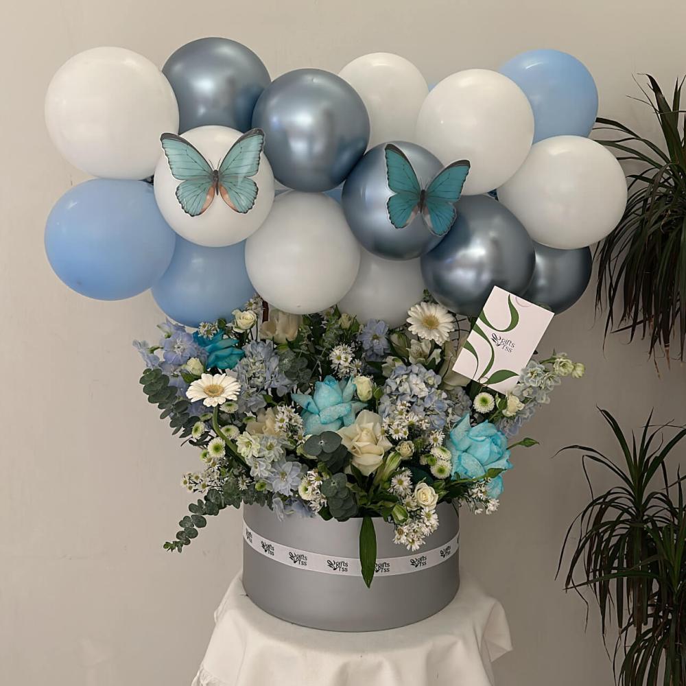تنسيق الغيمة - هدية مولود سماوية بتنسيق فاخر وتغليف أنيق، هدية مثالية للتعبير عن الرقي والجمال في المناسبات الخاصة.