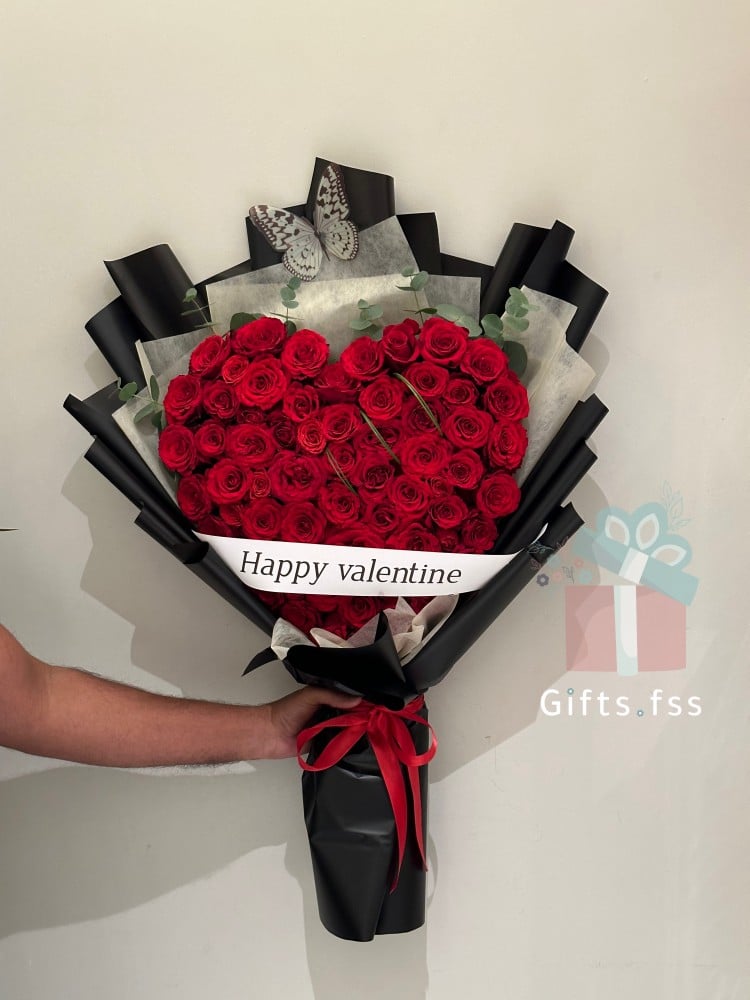 تُقدم هذه الباقة الرائعة التي تأتي في تغليف أسود أنيق تعبيرًا شعريًا عن المشاعر القلبية. مثالية للإهداء في يوم الحب، دع هذا العمل الفني الصغير ينقل حبك بطريقة أنيقة وترتكب في الذاكرة.